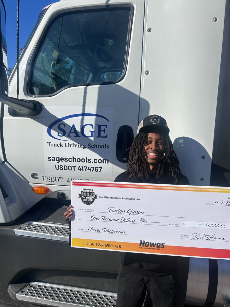 That realization provided the final push he needed. Now a student at Sage Truck Driving Schools in Jacksonville, Florida, Trinton is training for a career behind the wheel—an effort that recently earned him a $1,000 Howes Truckers of Tomorrow Scholarship. As he works toward his CDL, he is gaining hands-on experience and preparing to enter an industry he sees as essential to the global economy.